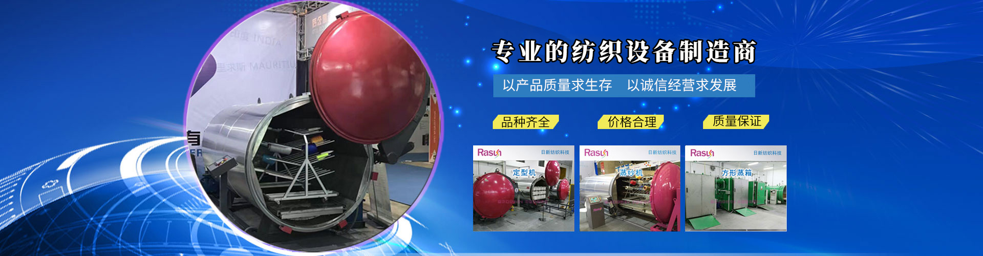 江蘇日新紡織科技有限公司是一家集科研、開發(fā)、生產(chǎn)、銷售、服務為一體專業(yè)設計制造蒸紗機,蒸紗鍋,蒸箱,定型機,襪子定型機,紗線定型機的的廠家,蒸紗機生產(chǎn)設備精良,蒸紗鍋設計工藝 ,蒸箱檢測手段齊全,紗線定型機技術雄厚,高品質的蒸箱,蒸紗鍋,蒸紗機,紗線定型機產(chǎn)品,在國內外享有盛譽。公司坐落于江蘇省金湖縣建設西路413號,處于南京、揚州、淮安一小時都市經(jīng)濟圈。公司本著“誠信之本”的經(jīng)營理念,在中國及全球地區(qū)不斷開拓新市場,熱誠與社會各界有識之士合作,構成一個良好的營銷體系。為您提供專業(yè)的一條龍服務。愿江蘇日新人能感染您,推動您,走入永遠屬于我們的天空中去。 + MORE